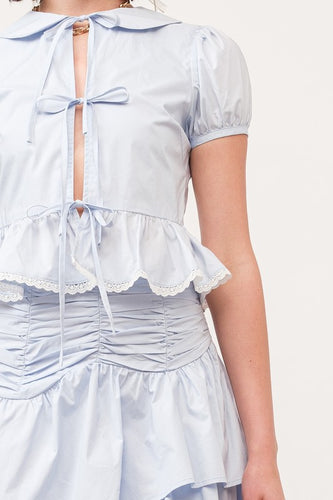 LAST ONE FINAL SALE Baby Blue Front Tie Peter Pan Collar Blouse