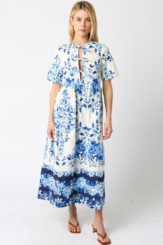 LAST ONE FINAL SALE Blue Floral Front Tie Maxi Dres