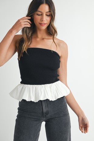 LAST ONE FINAL SALE Black/White Knit Bubble Strapless Top