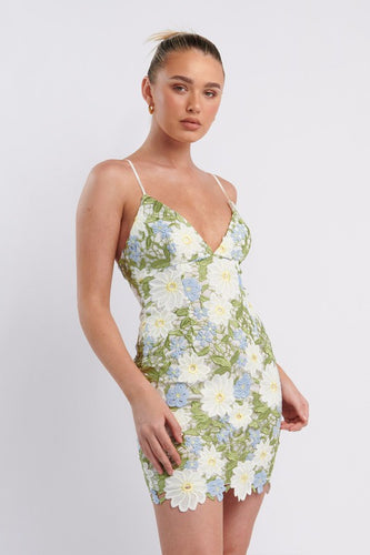 LAST ONE FINAL SALE Blue/Green Crochet Floral Mini Dress