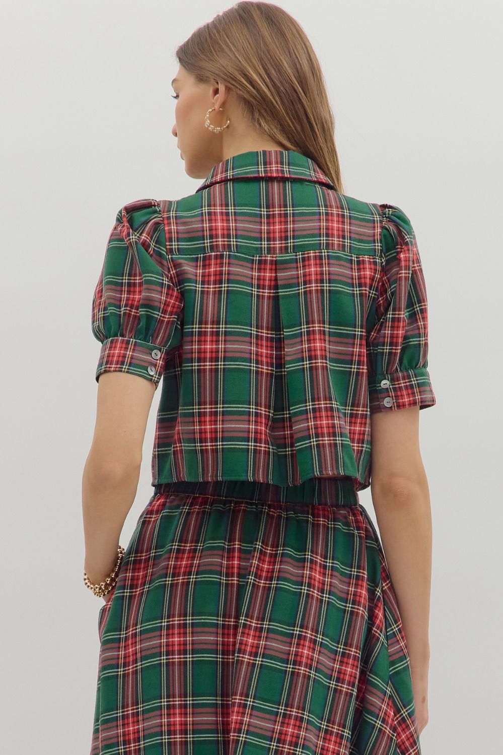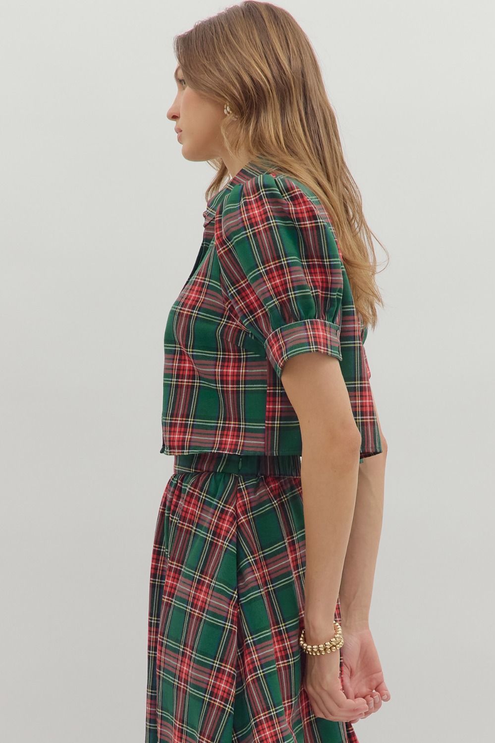 NEWEST ARRIVAL LAST ONE Green Christmas Plaid Midi Skirt Set