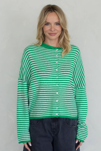 NEWEST ARRIVAL Green Piper Mini Striped Cardigan