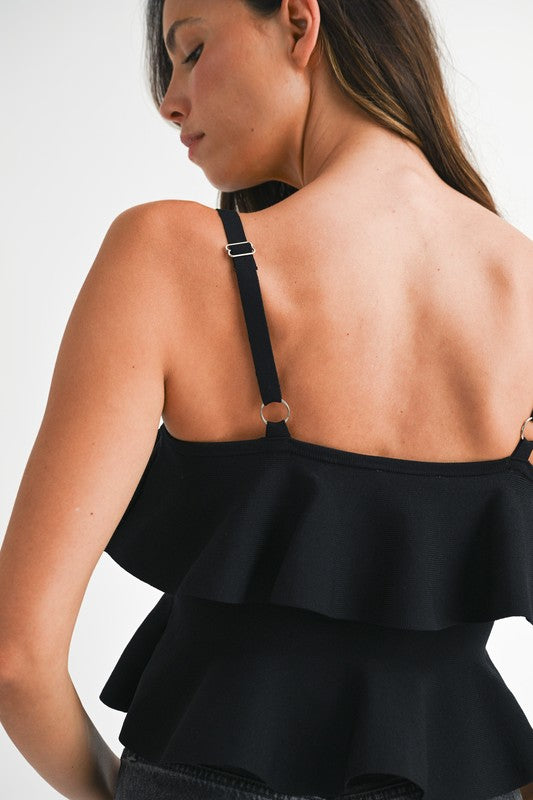 NEWEST ARRIVAL Black Ruffle Knit Crop Top