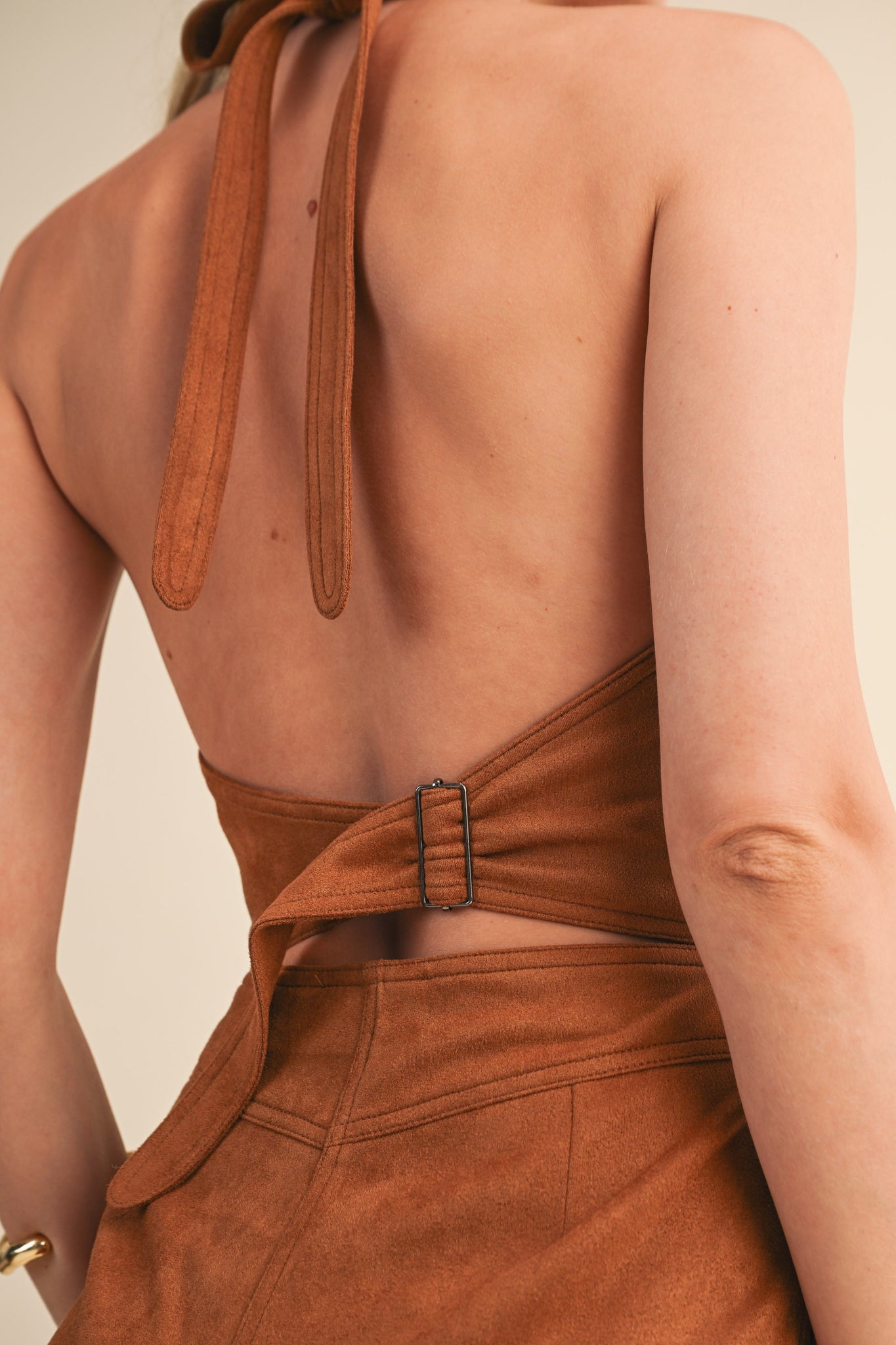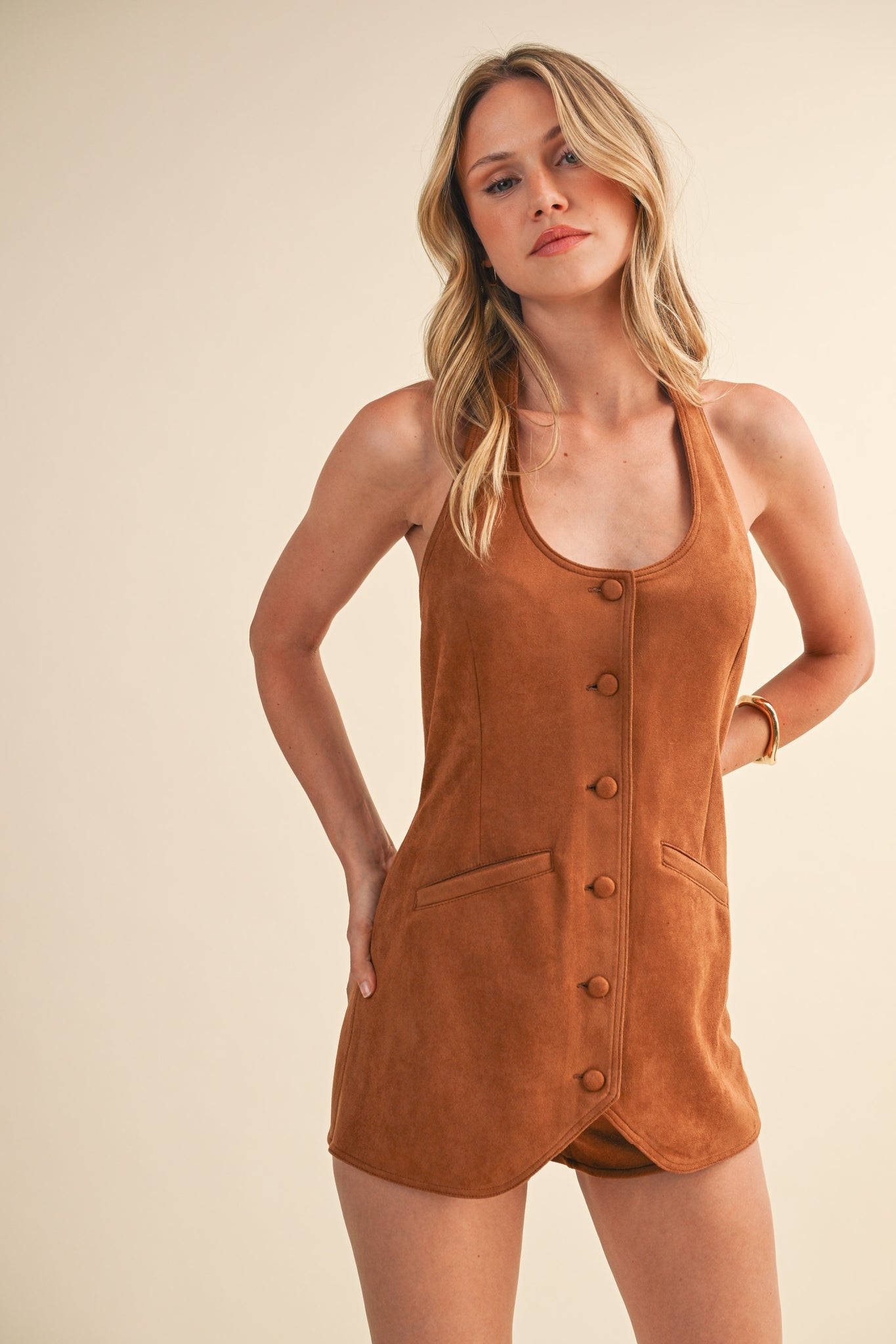 NEWEST ARRIVAL Camel Brown Suede Mini Vest Romper
