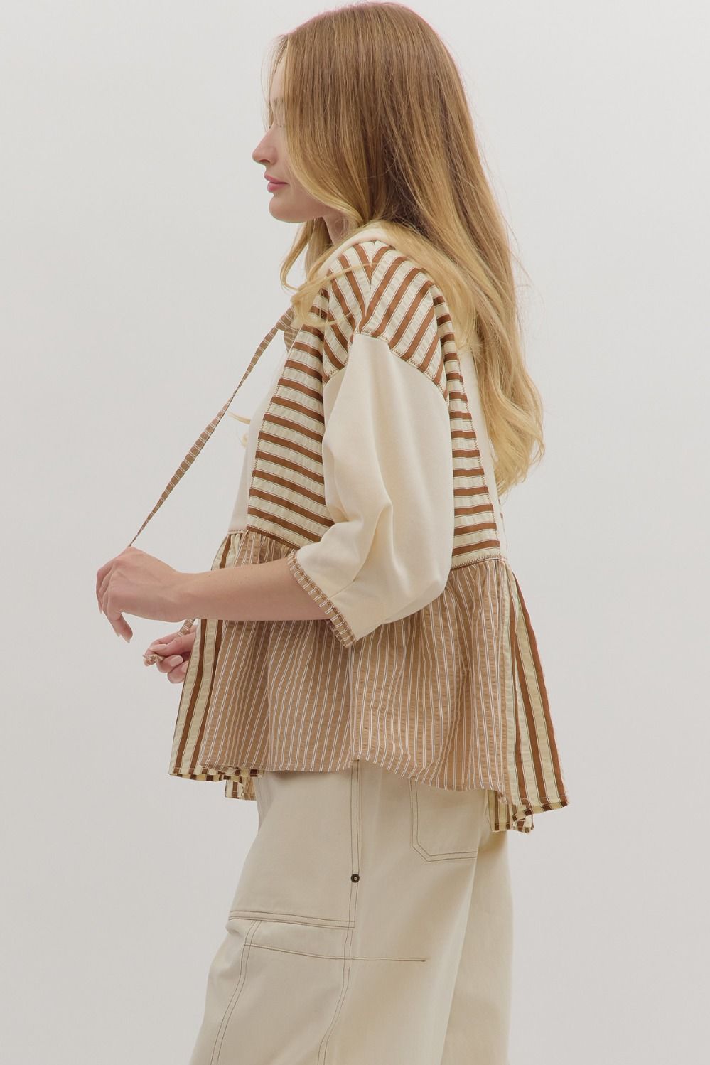 NEWEST ARRIVAL Camel Brown Striped Hoodie Top
