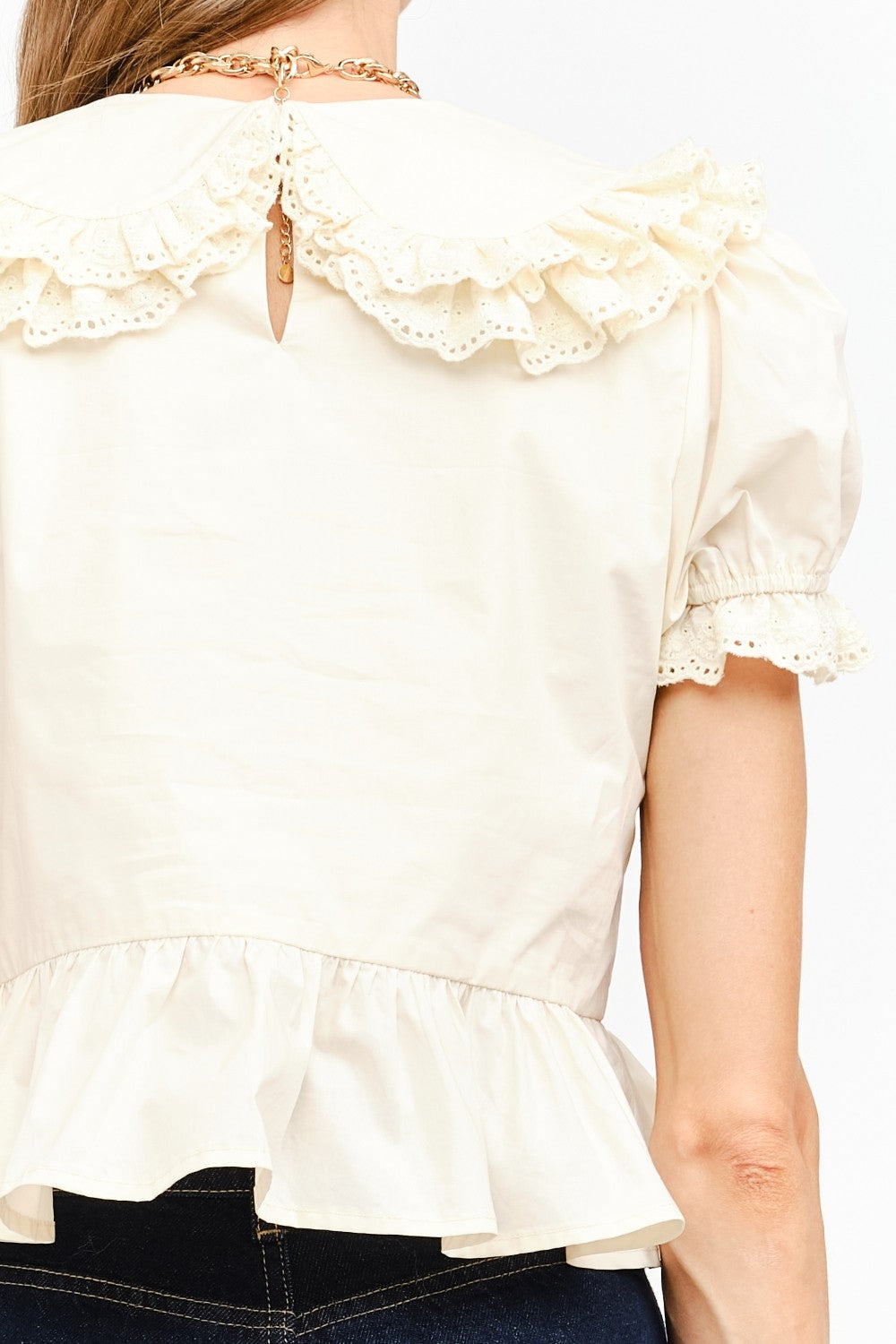 NEWEST ARRIVAL Cream Peter Pan Ruffle Peplum Blouse