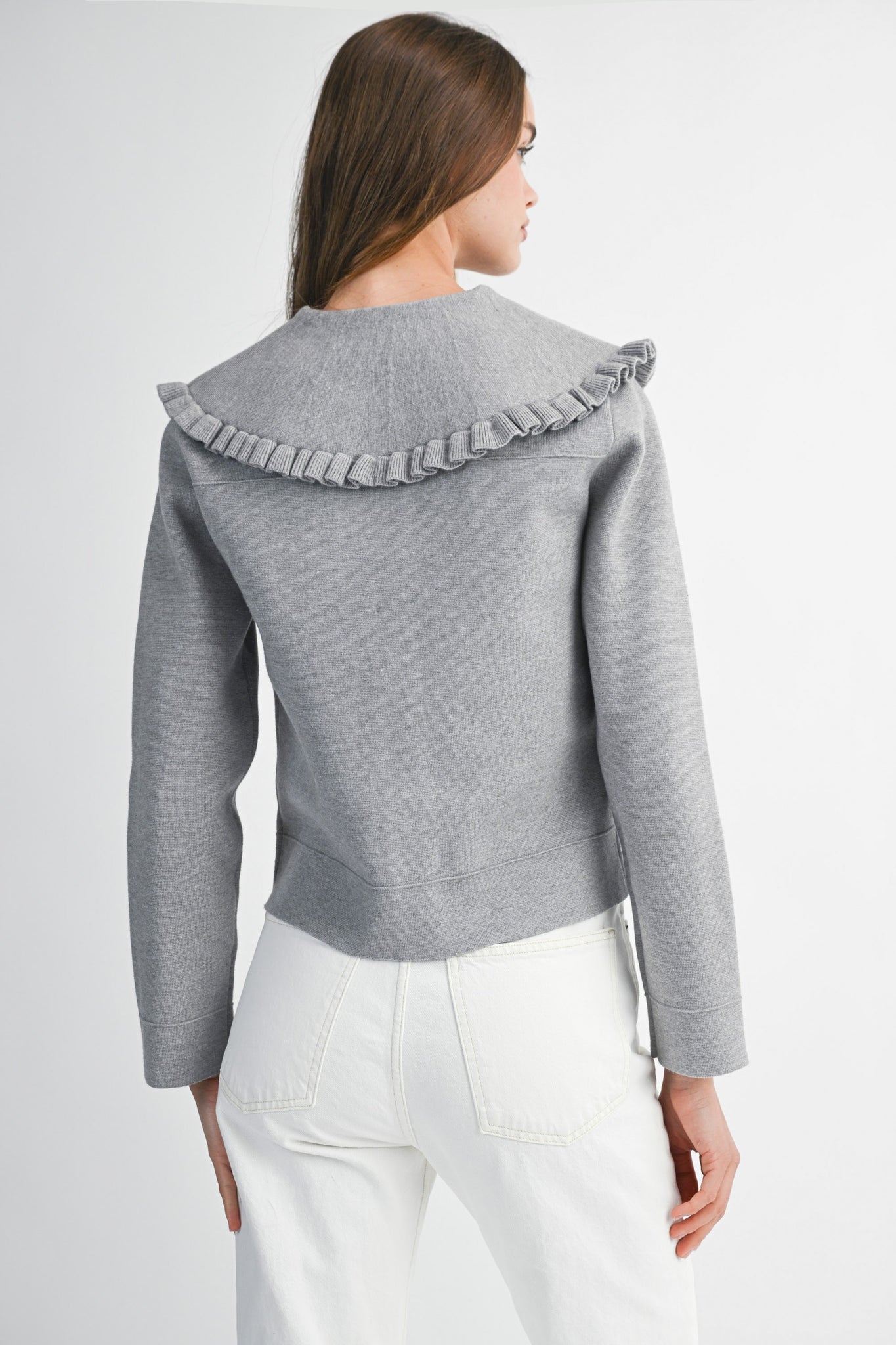 NEWEST ARRIVAL Gray Ruffle Peter Pan Cardigan Jacket