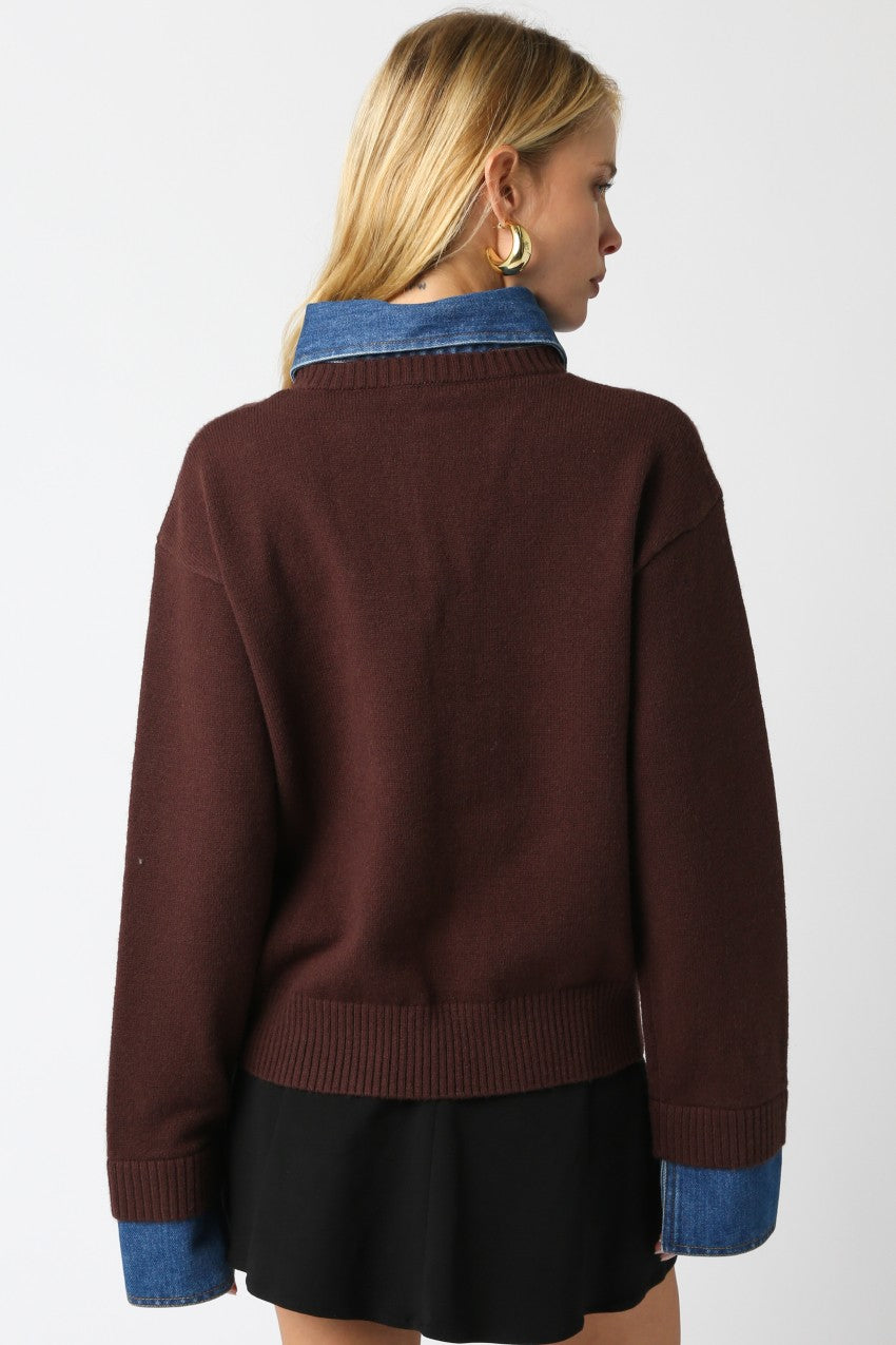 NEWEST ARRIVAL Brown/Denim Layered Knit Sweater
