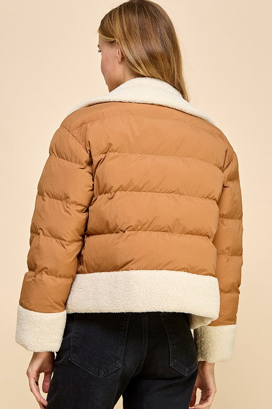 ONLINE ONLY Camel Sherpa Trim Puffer Jacket