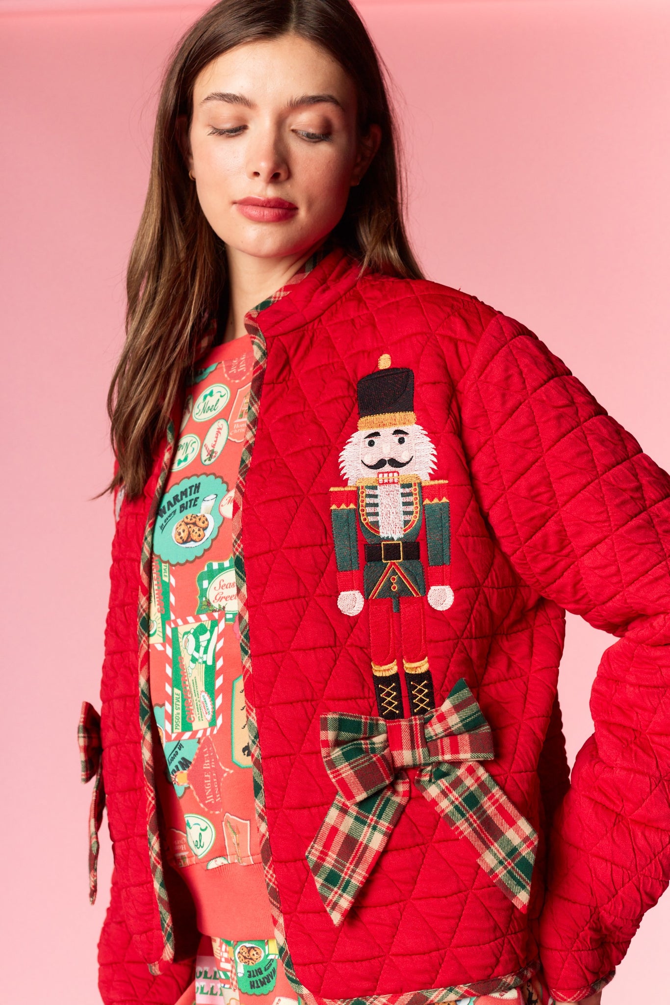 NEWEST ARRIVAL Red Quilted Nutcracker Bow Cardigan