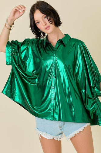 NEWEST ARRIVAL Green Metallic Oversized Button Down Blouse