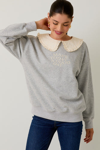 NEWEST ARRIVAL Gray/Cream Peter Pan Collar Make Today a Good Day Sweater