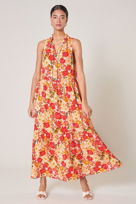Red/Gold Floral Maxi Dress