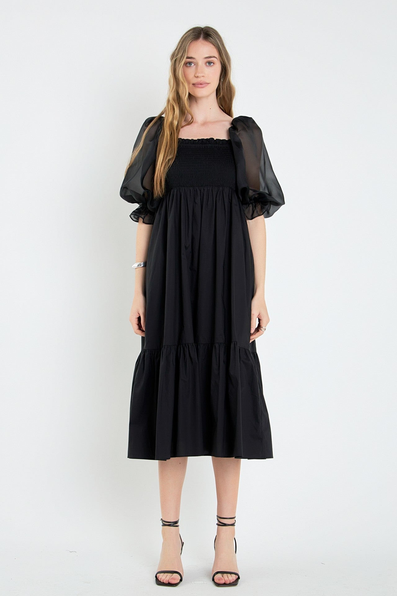 NEWEST ARRIVAL Black Organza Sleeve Midi Dress
