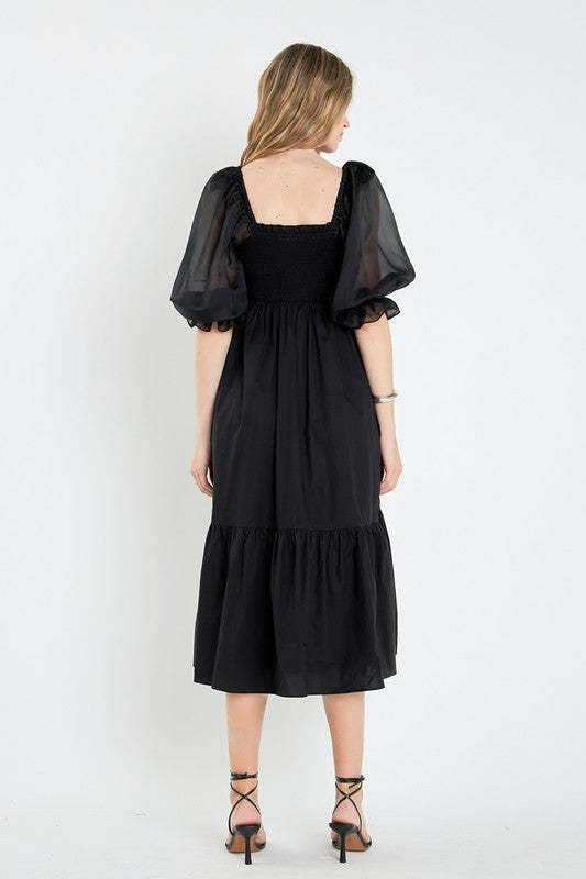 Black Organza Sleeve Midi Dress