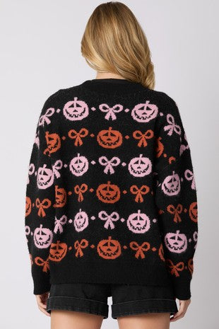 • Load image into Gallery viewer, Black Pumpkin and Bow Cardigan